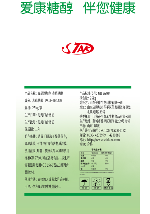 執(zhí)行標(biāo)準(zhǔn):GB26404(食品添加劑 赤蘚糖醇)